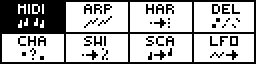 All the fun in Hermod resides in its effect system, allowing you to transform input signals, whether it's MIDI or CV. You can stack on each track up to 8 real-time effects: Quantize, Swing, Arpeggiator, Ratchet, Random, Euclid, Glide, Harmonizer, Delay, Chance, Scale, LFO... Experiment with the effects position and parameters to generate groovy rhythms and eccentric melodies!