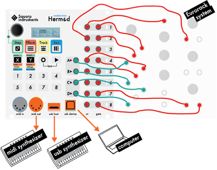 You can even use multiple Hermods as MIDI/USB to CV interfaces for your computer or your tabletop sequencer: