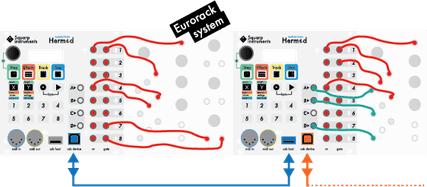 You can increase the potential of Hermod by pairing it with the Pyramid sequencer, or you can to use Hermod as a CV/Gate interface for Pyramid midi outputs.