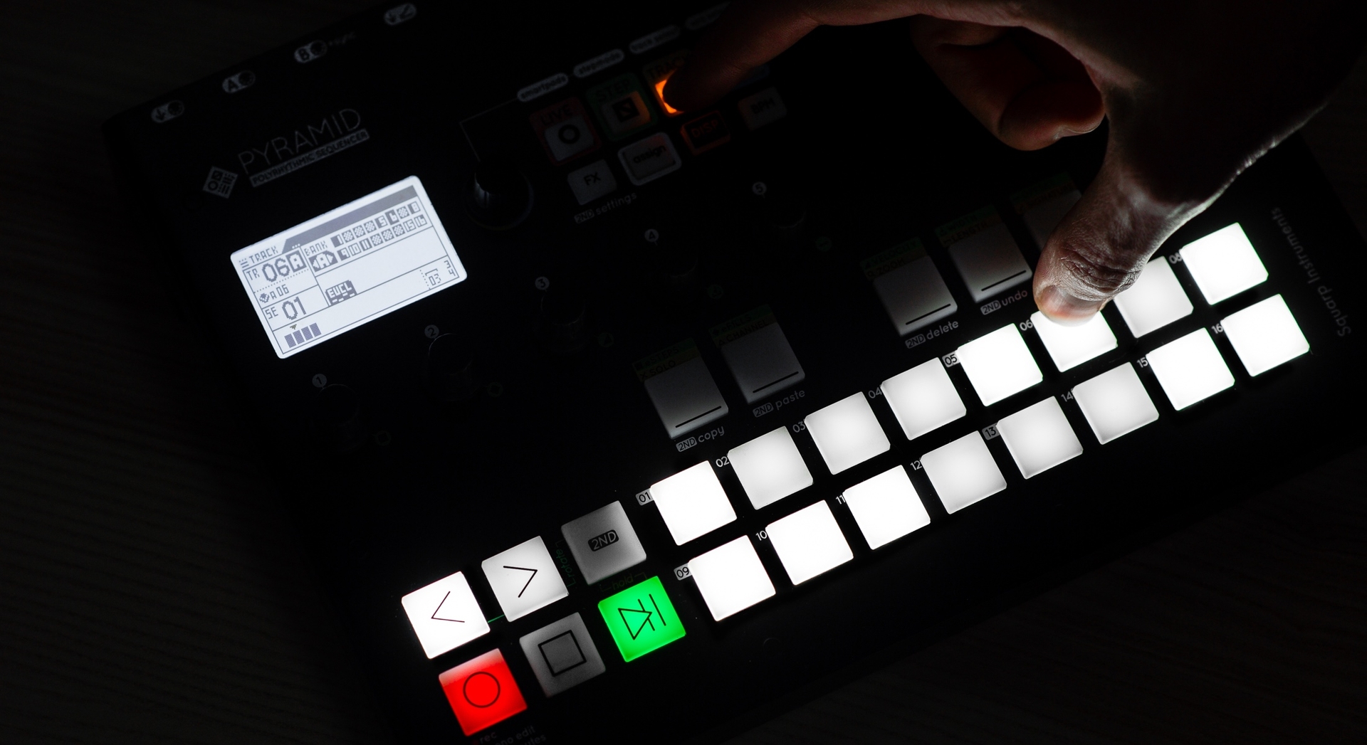 We are taking care to avoid menu diving. Main features don't require the screen, as the 35 lit pads show you all basic information. Pyramid workflow helps you to gain time, make music with ears & fingers, and facilitate experimentation. You will never go back to computer to make music!