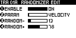 PARAM  VELOCITY  PITCH   OCTAVE   NOTE LENGTH