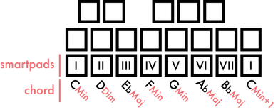 The Chord Smartpads represent the 7 degrees of the harmonized scale. These harmonized scales are the basis on which almost every song you know is built.
