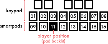 Note: recorded & processed notes are displayed on the 13 black & white keypads with low luminosity.