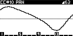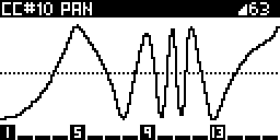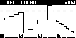 A 16-step automation of the PITCH BEND message. The dotted line represent the current CC value.