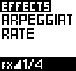 ARPEGGIATOR effect: RATE parameter is selected, the current parameter value is 1/4