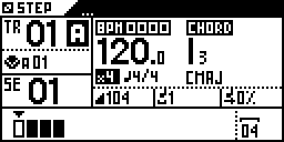 A step can be filled with a note received on the MIDI input, (for example C3♯). You can also perform a chord with your external keyboard (for example C2+2) instead of a note. So you can fill your step sequence with custom chords: