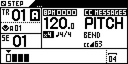 PITCH BEND automation is selected, the current value is 127 (if you press a step, a pitch=127 message will be added)