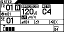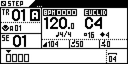 When you hold a step (or when you hold two steps to select a row of steps), the screen displays the note parameters of the selection: