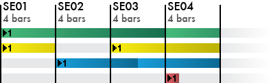- TR03 is 6-bar long: it replays from the start in the middle of SE03.