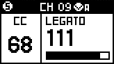 When an assigned encoder is moved or pressed, a popup is displayed, with the CC number (68), the CC value (111) and the CC MIDI channel (CH09A):