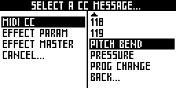 Now select the CC message number, from CC0 to CC119. Scroll the list and press