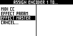 The display "assign control to..." must popup. Select and press EFFECT MASTER with