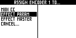 The display "assign control to..." must popup. Select and press EFFECT PARAM with