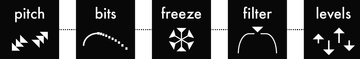 - Chaque voix dispose d'un rack d'effets à 5 effets : bitcrusher, pitch (interpolateur 6 pôles), filtre, freeze, drive