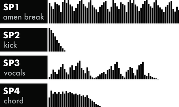 Des kits de boîtes à rythmes aux samples de synthétiseurs, des boucles rythmiques aux effets sonores, des pistes d'accompagnement aux morceaux audio d'une heure, Rample peut lire jusqu'à 4 fichiers .wav sur des sorties audio indépendantes: