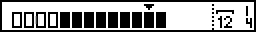 The example above shows a 12 and 1/4 measure long track (12 measures + 1 beat). The four outlined squares represent the first page of the track. The arrow icon indicates the player is currently at the twelfth measure.