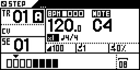 Current track: track number and bank (A, B, C, D) in Live and Step Modes.